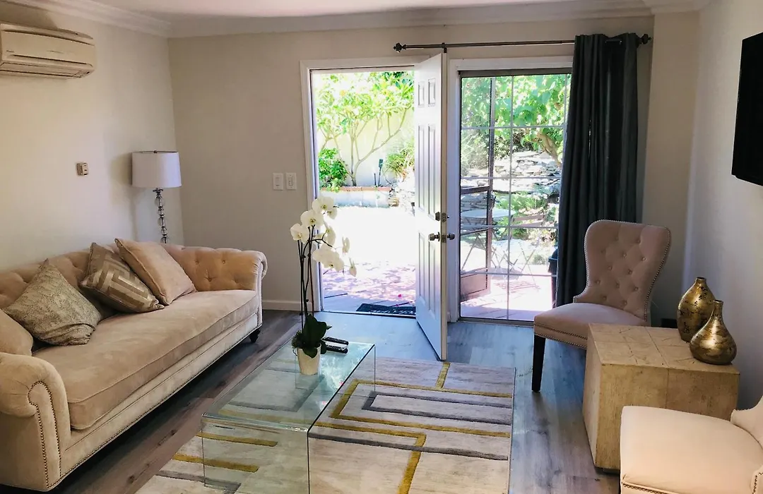 Situada a unos 25 minutos a pie del Beverly Cañon Gardens, la villa Cozy Beverly Hills Los Ángeles invita a los huéspedes a relajarse en una terraza.